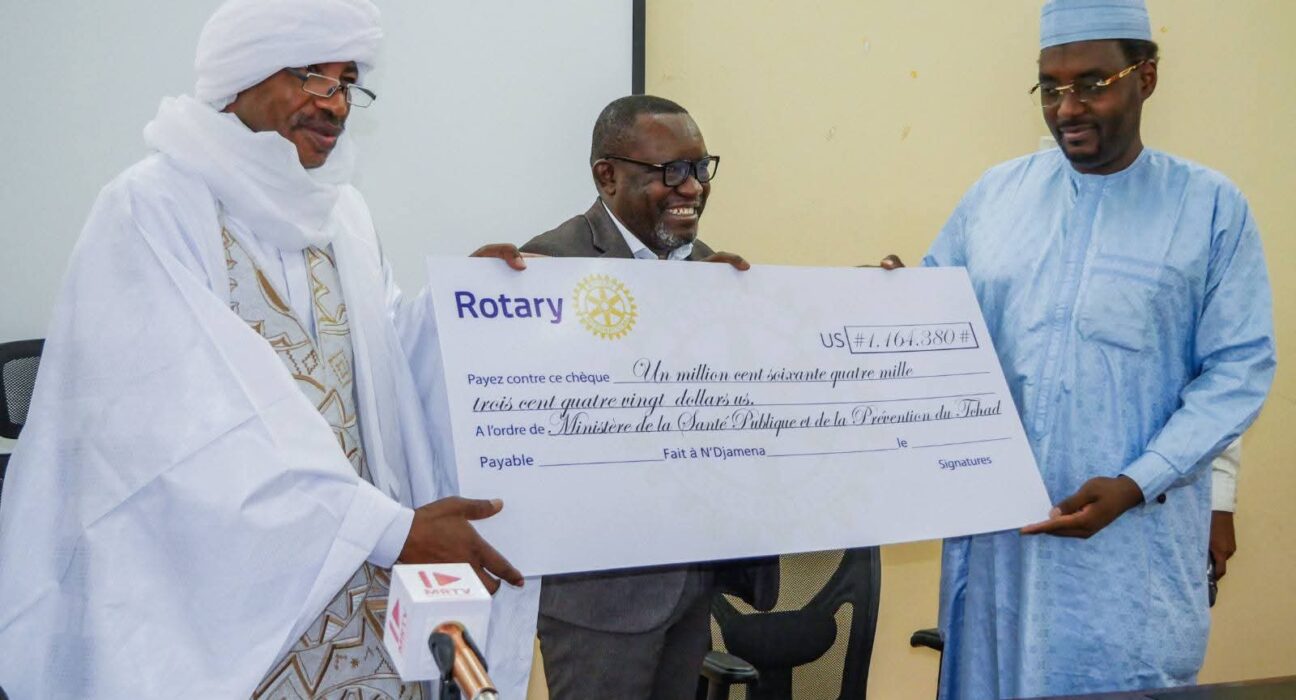Le 23 mars 2026, le Dr Abdelmadjid Abderahim, ministre de la Santé publique du Tchad, a reçu un soutien financier crucial : plus de 600 millions de FCFA offerts par le Club Rotary International-Tchad pour renforcer la campagne nationale contre la poliomyélite.